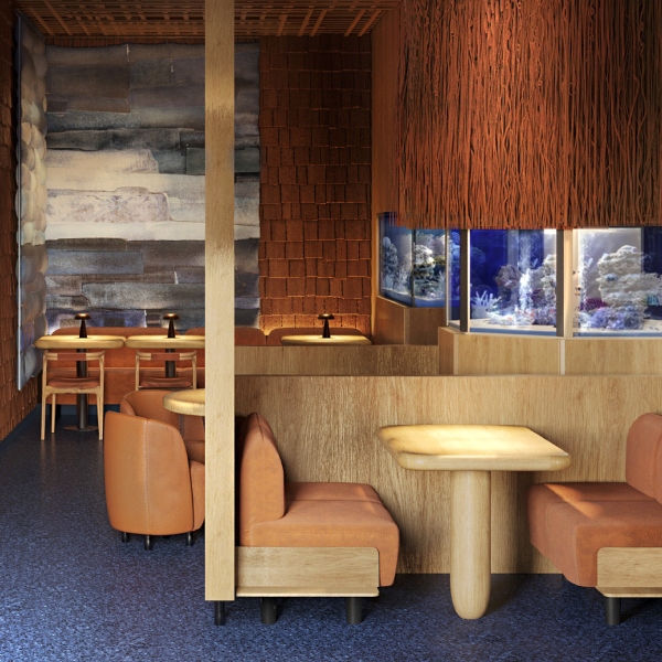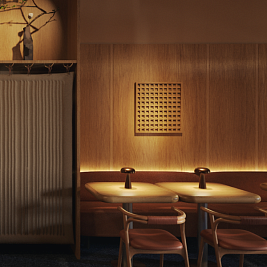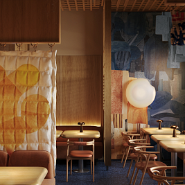 Гостей ждут два уютных зала, в которых предусмотрены индивидуальные кабинки для компаний от двух до десяти человек, а также небольшая детская.