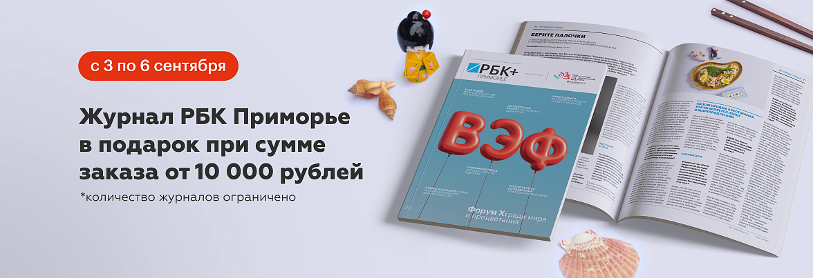 С 3 по 6 сентября оформи заказ на доставку или вынос от 10 000 рублей и получи журнал РБК Приморье в подарок!