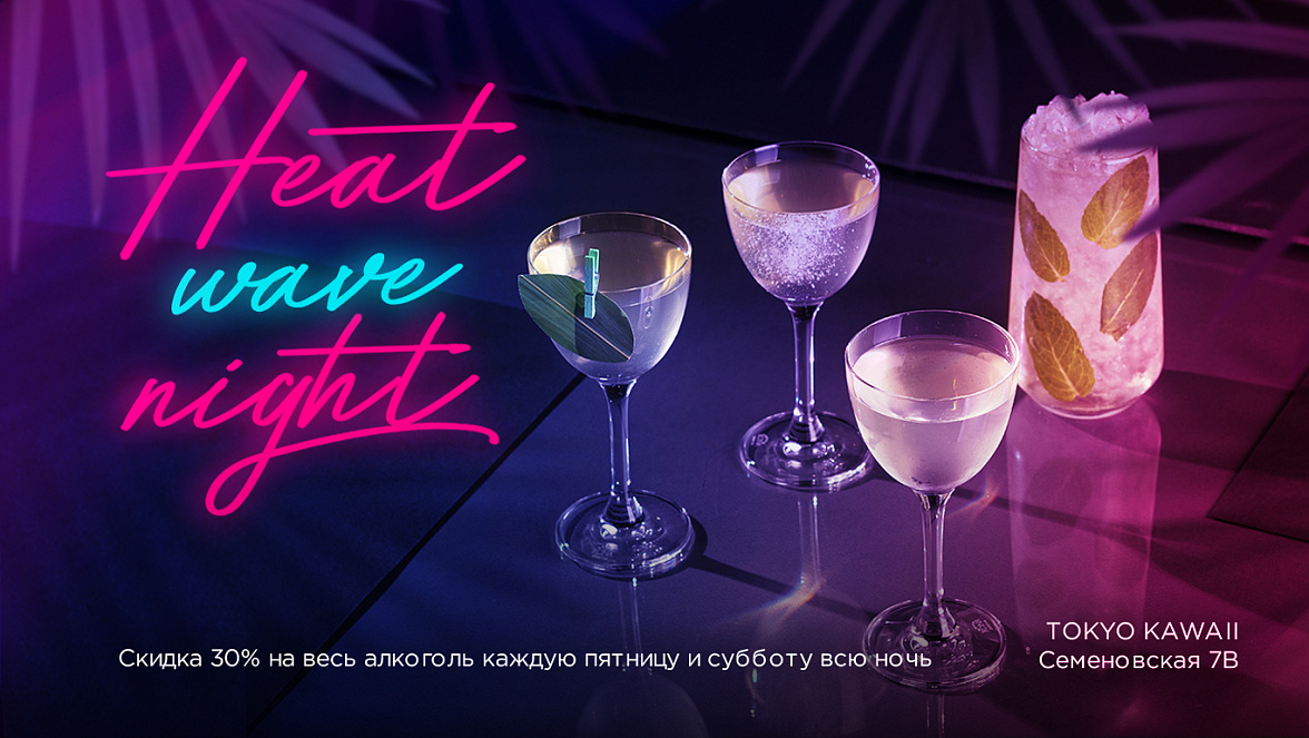 Каждую пятницу и субботу в Tokyo Kawaii на все алкогольное меню бара действует 30% скидка!