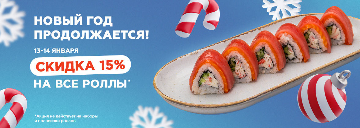 13-14 января дарим скидку 15% на категорию Роллы!
