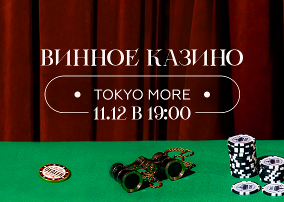 Приглашаем вас на увлекательную винную дегустацию в формате «казино». Под руководством бренд-сомелье Андрея Цой гости попробуют угадать, какое именно вино в бокале, делая ставки на основе его цвета, аромата, вкуса и других органолептических нюансов. Главный приз - подарочный сертификат в TOKYO на 3000 рублей!