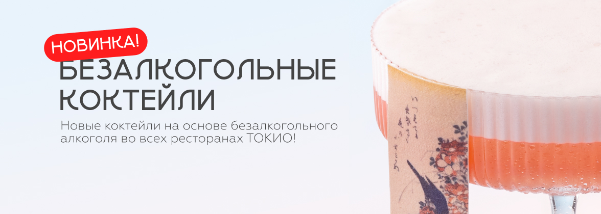 С 24 апреля обновленное меню бара и новые коктейли на основе безалкогольного алкоголя во всех ресторанах Токио. Предложение не действует на доставку и вынос.